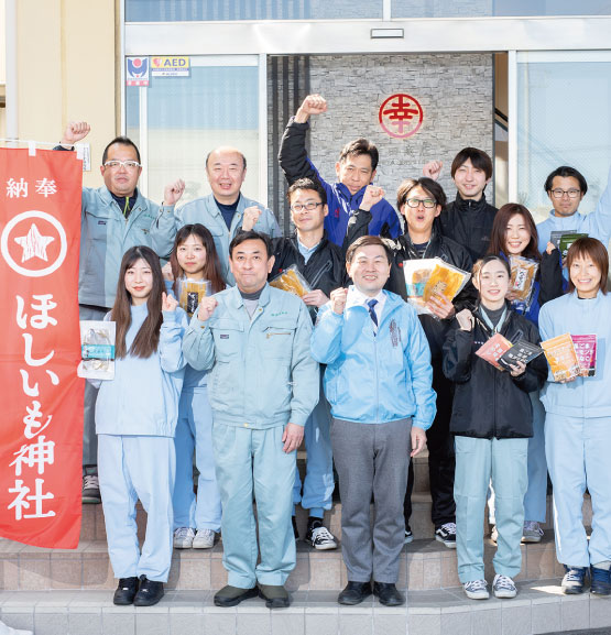 「地域とともに生き、地域に貢献する」を掲げる幸田商店は、地域のソウルフードである干し芋を製造・販売するだけでなく、後世に残す活動もしています。干し芋の歴史や文化の継承、普及に取り組むプロジェクト「ほしいも学校」の参画、観光名所の「ほしいも神社」建設に尽力するなど、様々な活動に力を入れています。また、勝田マラソンへの協賛、出店、「茨城ロボッツ」とのスポンサー契約、「鹿島アントラーズ」ビジネスクラブ加盟など、地域スポーツの発展に貢献しています。