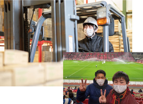 幸田商店は各部署の若手からベテランまで垣根なく、チームワークで臨機応変に作業を行う風通しのよさが魅力。フォークリフト免許など、業務に必要な資格取得は全額サポート。1時間単位で自由に有給が取得でき、例えば、午後に2時間だけ中抜けしてプライベートの用事を済ませることも可能です。そして希望者には鹿島アントラーズと茨城ロボッツの観戦チケットを無料で配布。地域スポーツファンには嬉しい福利厚生制度もあります。